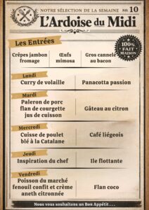 Plat du jour (sauf le samedi, uniquement le midi)