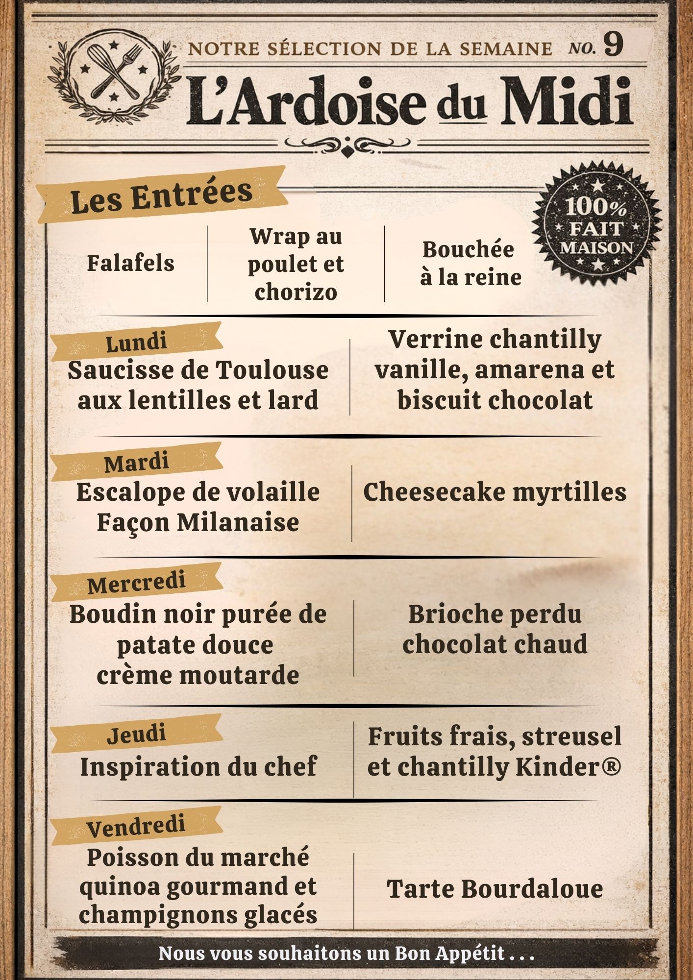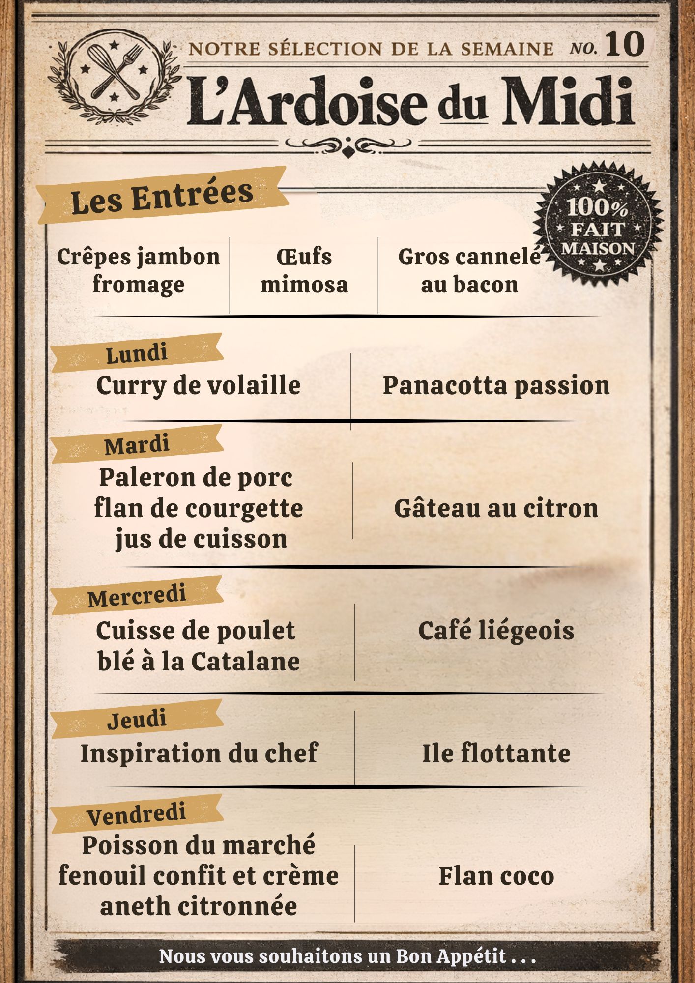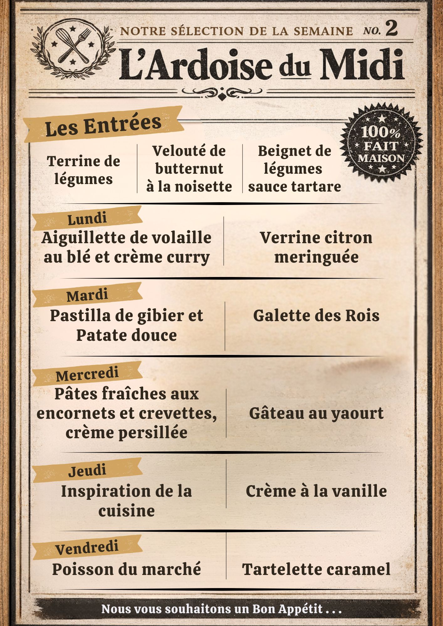 Entrée de la Semaine (sauf le samedi, uniquement le midi)