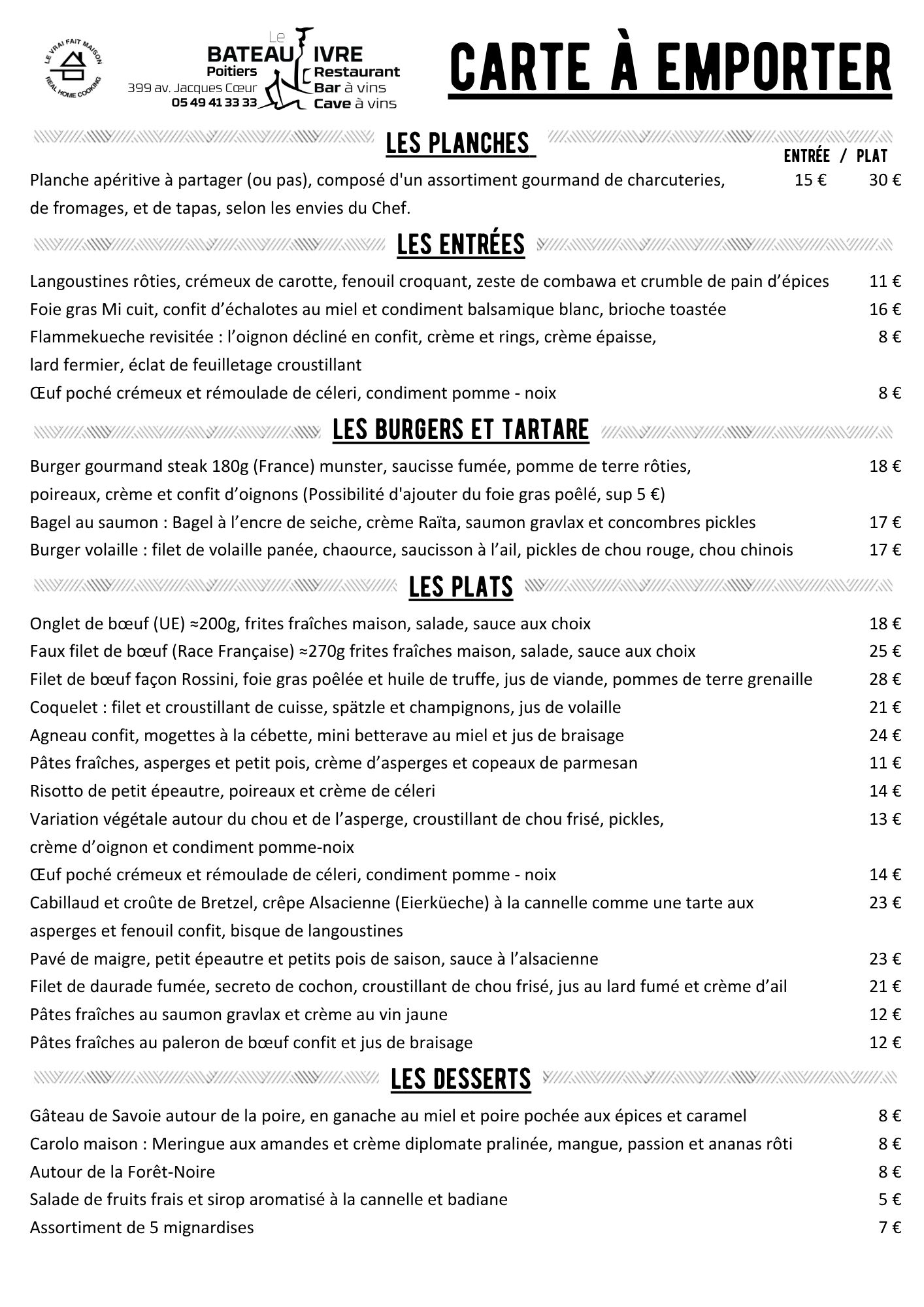 Pour retirer vos plats au Bateau Ivre Poitiers, veuillez les commander 30 minutes à l’avance, du lundi au samedi midi et soir. Pour un retrait le jour même, les commandes devront être passées avant midi pour un retrait à partir de 12h00.